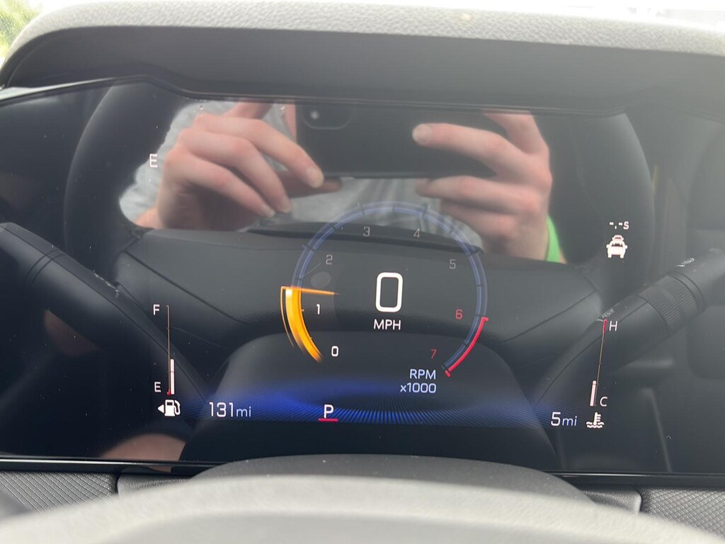 - The vehicle is equipped with a camera that displays an image of the area behind the vehicle on an interior display.