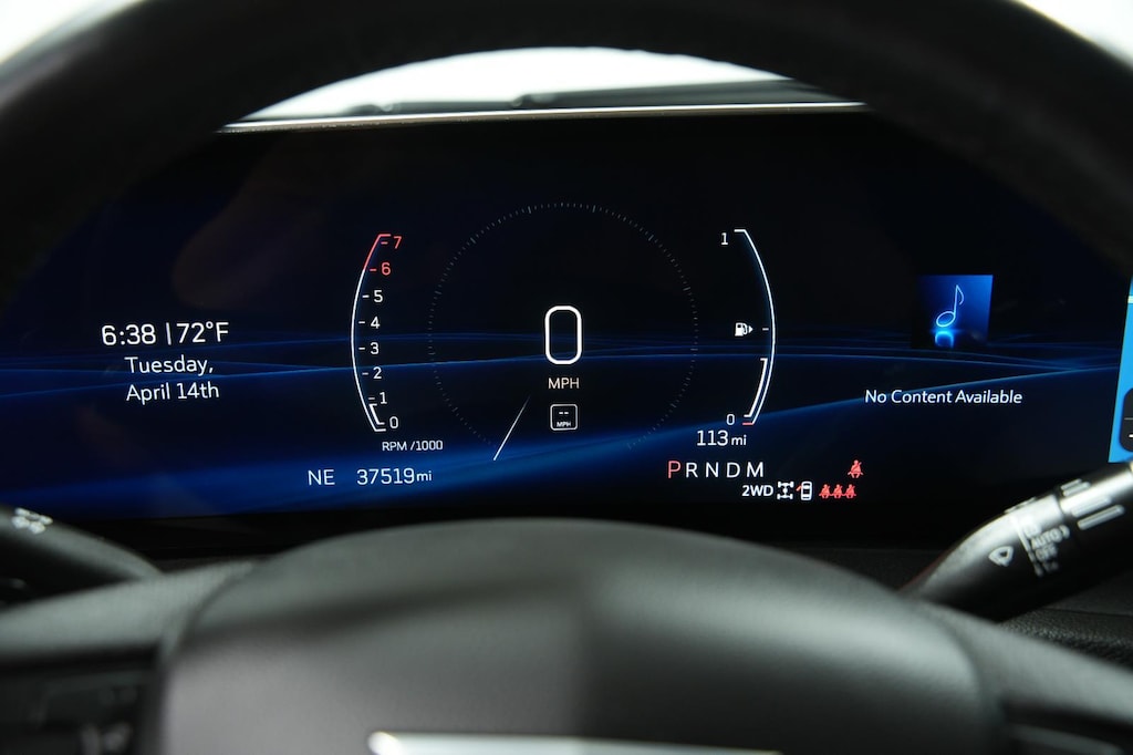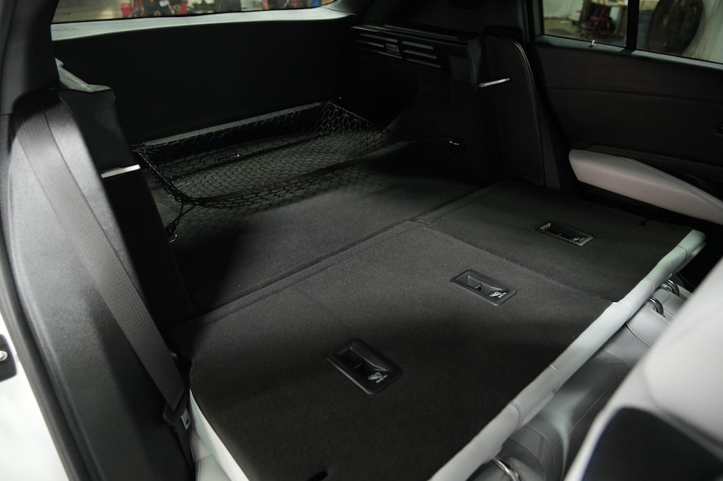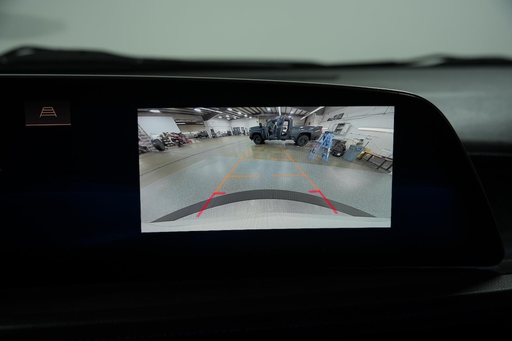 - The vehicle is equipped with a camera that displays an image of the area behind the vehicle on an interior display.