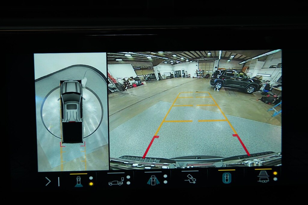 - Allows driver to see inside the cargo bed on the infotainment display to help with 5th wheel or gooseneck hitching and to check cargo