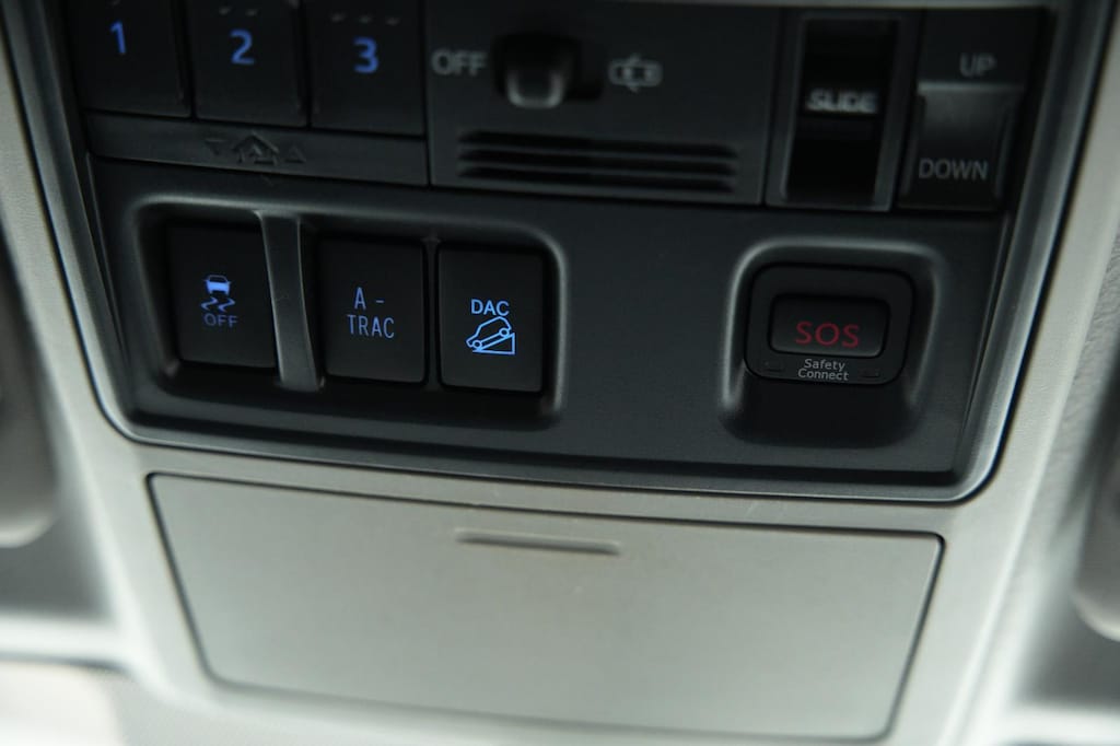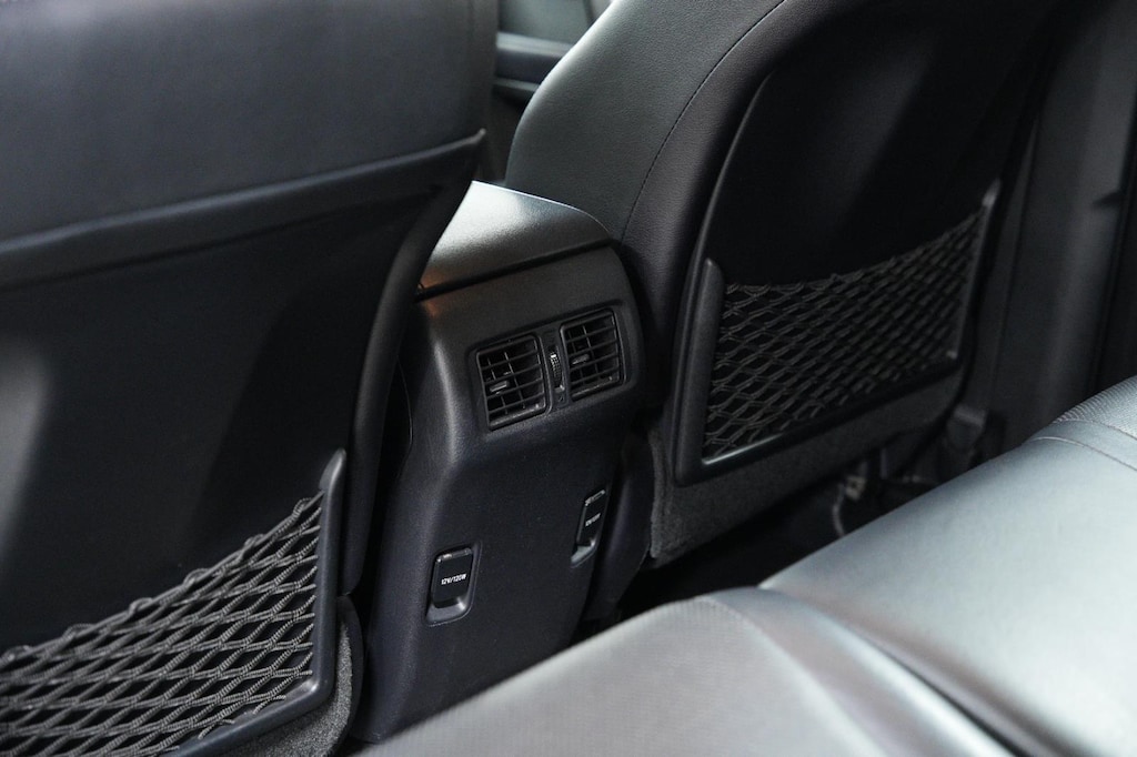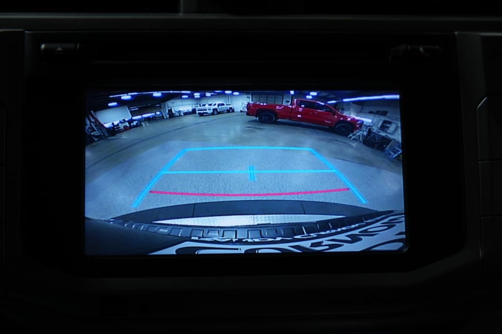 - The vehicle is equipped with a camera that displays an image of the area behind the vehicle on an interior display.