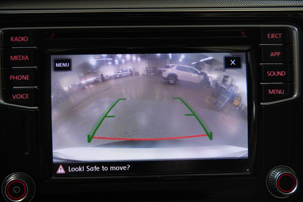 - The vehicle is equipped with a camera that displays an image of the area behind the vehicle on an interior display.